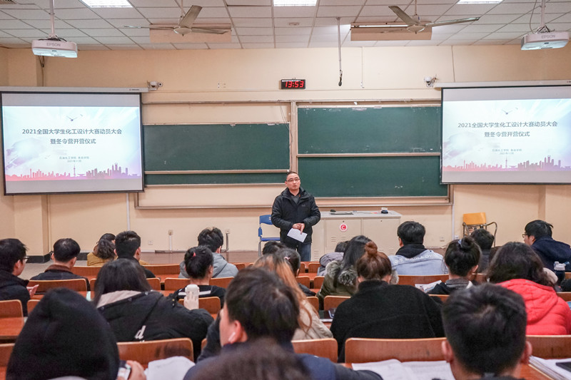 为进一步培养学生的工程设计能力,筹备第十五届全国大学生化工设计大赛,pg电子官网于12月21日下午在W5阶举办2021全国大学生化工设计动员大会暨冬令营开营仪式,出席本次活动的有校实验室建设与管理处处长马江权、学院党委副书记宣慧、副院长刘文杰、院长助理周满、专业辅导员及18级化工、能化全体学生。