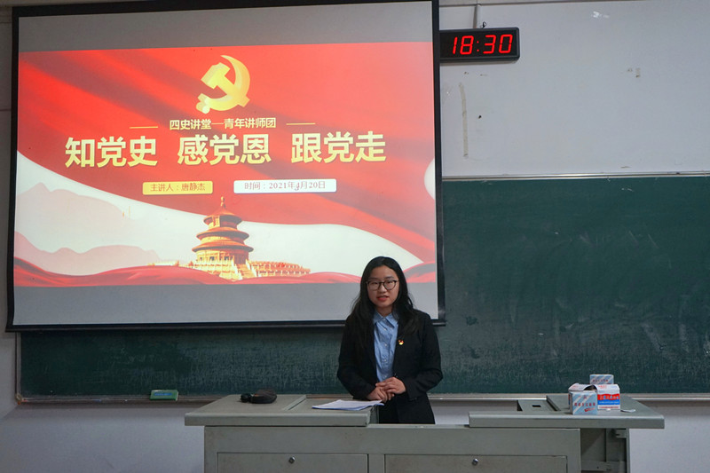 为进一步推进党史学习教育,引导学生知史爱国,知史爱党,4月20日18:30pg电子官网在W1202开展了以“知党史、感党恩、跟党走”为主题的党史学习教育。本次宣讲由团委副书记王博智主持,学生第二党支部党员唐静杰主讲,各班级代表参加。