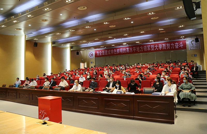 2020年5月14日下午,pg电子官网在文彰楼报告厅召开全院教职工大会,学院党政领导、全体教职工参加了会议,后勤产业集团党总支书记王瑾、纪委办周春丽老师到会指导工作,党委书记吴荷平主持会议。