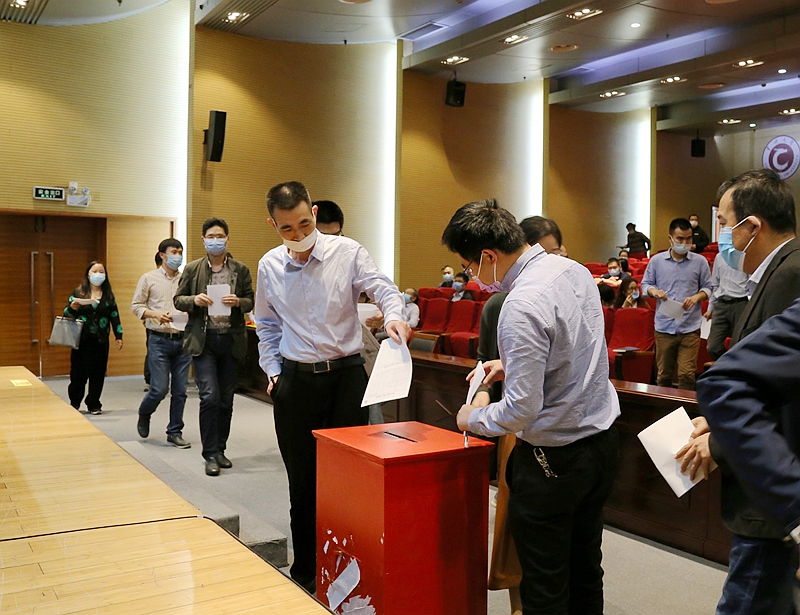 会议第一项议程王瑾书记说明了干部民主推荐的原则和程序后,教师们对院中层干部人选进行了投票推荐。