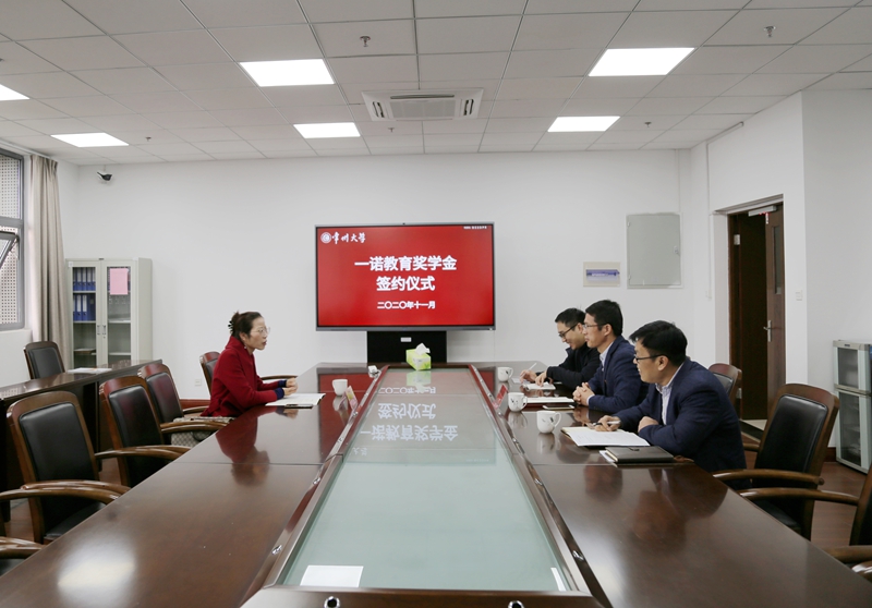 2020年11月20日上午,常州常检一诺食品检测中心有限公司与pg电子官网在测试实验楼613会议室举办“一诺教育奖学金”签约仪式,该公司总经理陈元芝、pg电子官网党委书记吴荷平,食品教工党支部书记任庆功,食品专业教师邹平参加了签约仪式。