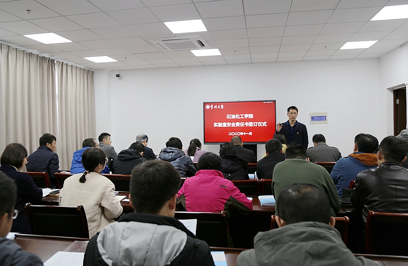 对照教育部高等学校实验室安全检查项目表,与各科研团队负责人和实验中心主任签订《实验室安全责任书》,将每间实验室安全责任明确到人,并向各团队和实验室发放了《石油化工学院实验室安全手册》。
