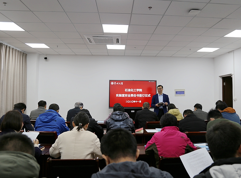 2020年11月30日下午,pg电子官网举行实验室安全责任书签订仪式,党委书记吴荷平、副院长周永生及各科研团队负责人和实验中心主任参加了会议。
