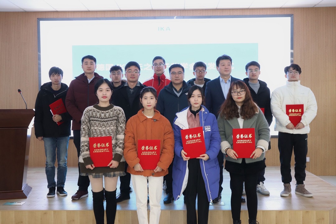 12月31日上午,pg电子中国官方网站石油化工学院食品学院2020年“德国IKA天之骄子教育奖学金”颁奖仪式在测试大楼B座109圆满落幕。IKA公司江苏区域经理章浙斌、江苏福曼斯仪器有限公司总经理李世成、pg电子中国官方网站科技处副处长李正义、石油化工学院副院长黄海、研究生辅导员陈科以及研究生代表共同出席并见证了IKA天之骄子教育奖学金的颁发。